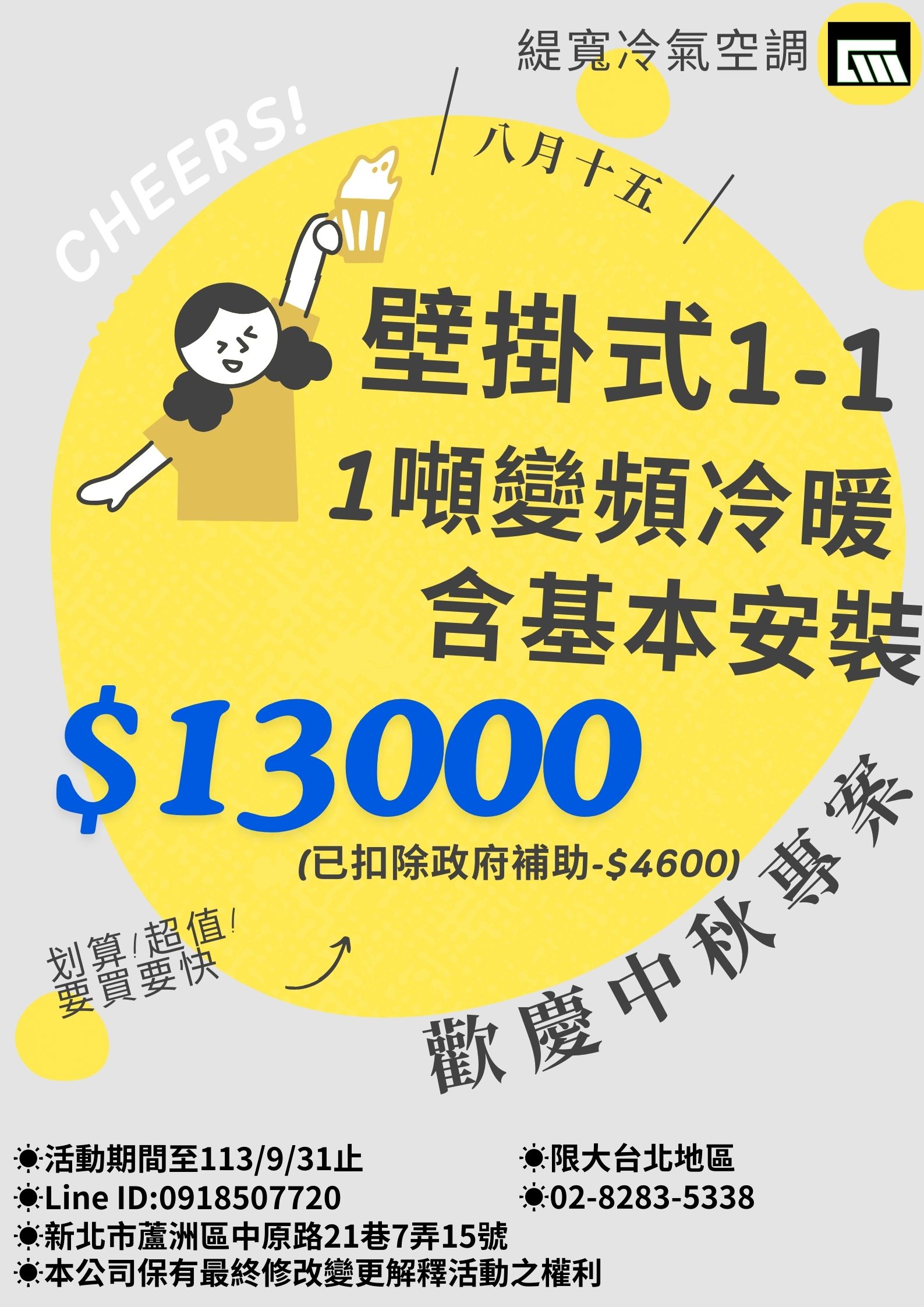 1噸分離式含基本安裝 $13000