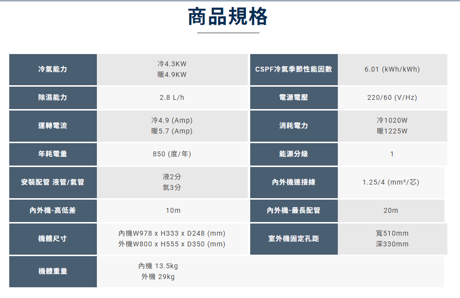 分離式標準安裝內容: