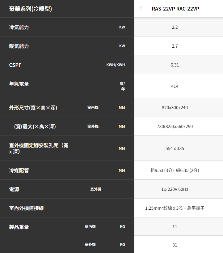 日立《R32豪華系列》變頻冷暖 分離式冷氣 RAC-22VP/RAS-22VP含基本安裝(適用3坪左右)