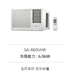 三洋《R32系列》變頻冷暖 窗型冷氣 SA-L60VHR/R60VHR 含基本安裝(適用7坪左右)